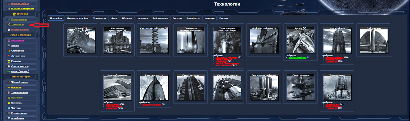 Как узнать через меню "Технологии" можете ли вы построить/исследовать данную теху?