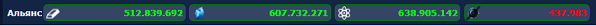 Каждый Альянс имеет счет с ресурсами металл/кристалл/дейтерий/ТМ. Ресурсы со счета Альянса могут расходоваться только на нужды Альянса. Вывод ресурсов со счета Альянса не возможен.