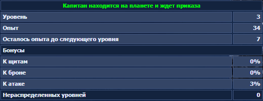 Так же не начисляется опыт, если бой закончился выигрышем атакующего за 1 раунд Капитаны всегда улучшают характеристики кораблей своего флота - даже если участвуют в бою, за который они не получат опыта: атака на неактивных игроков, удержание, САБ, уничтожение луны и т.д.