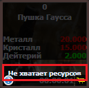 Также нужно наличие ресурсов на постройку их. При нехватке ресурсов, будет показывать на изображении обороны.