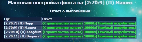 Когда настроили все, так как нужно - жмем кнопку "Отправить" в нижней части "матрицы". Если сделали все правильно - получим много сообщений зеленым шрифтом о начавшейся постройке. При ошибке сообщение будет написано красным шрифтом.
