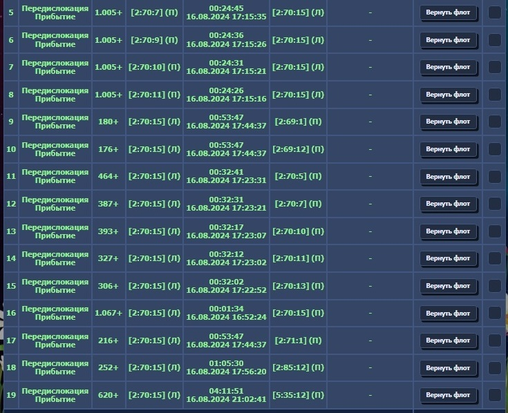 Ну а на рис. 5 результат - флоты в полете, в режиме "Передислокация".