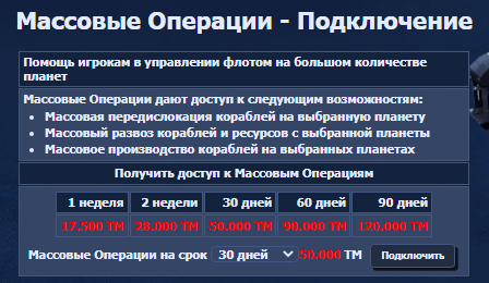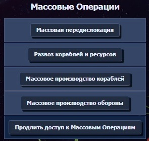 С продлением массовых операций все понятно - при наличии ТМ можем продлить, не ожидая, пока истечет срок действия. Что до остального, то у нас есть автоматизация постройки кораблей, постройки обороны, передислокации кораблей и развозки кораблей и ресурсов.
