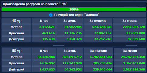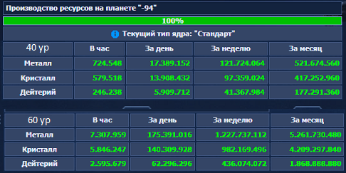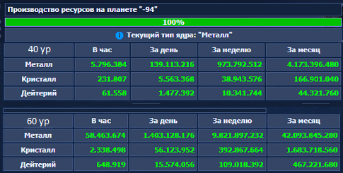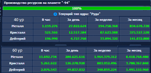Однако, есть большое НО, чтоб достичь такого уровня производства, нужно построить все рудники 40 ур., что как Вы поняли обойдеться намного дороже чем ядро Металл.