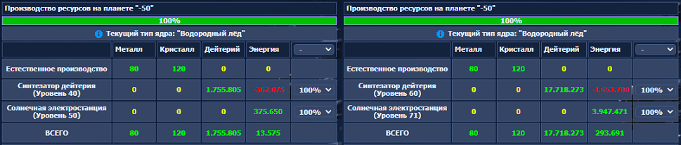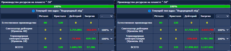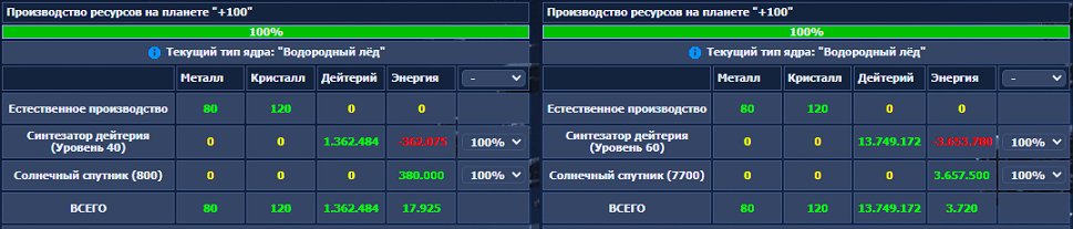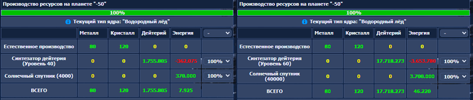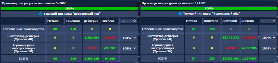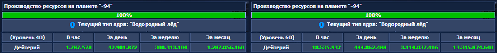 Давайте посчитаем и возьмем производство дейтерия в день на 40 ур и на 60 ур: